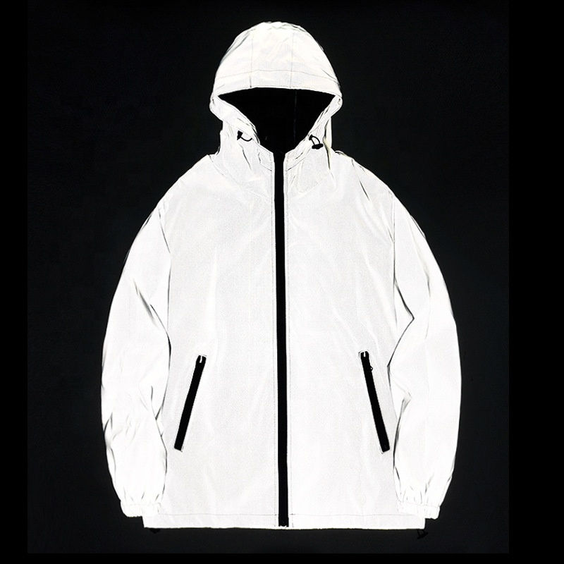 เสื้อแจ็คเก็ตกันน้ำมีฮู้ดสำหรับผู้ชายเสื้อโค้ทสะท้อนแสงมีฮู้ดเสื้อแจ็คเก็ตแฟชั่นมีกระเป๋าสำหรับแจ็คเก็ตกลางแจ้งของผู้ชาย