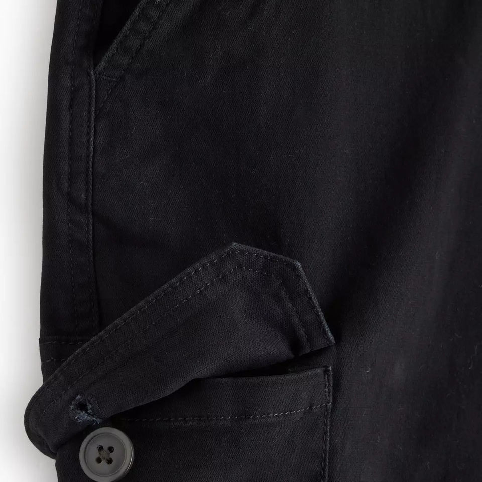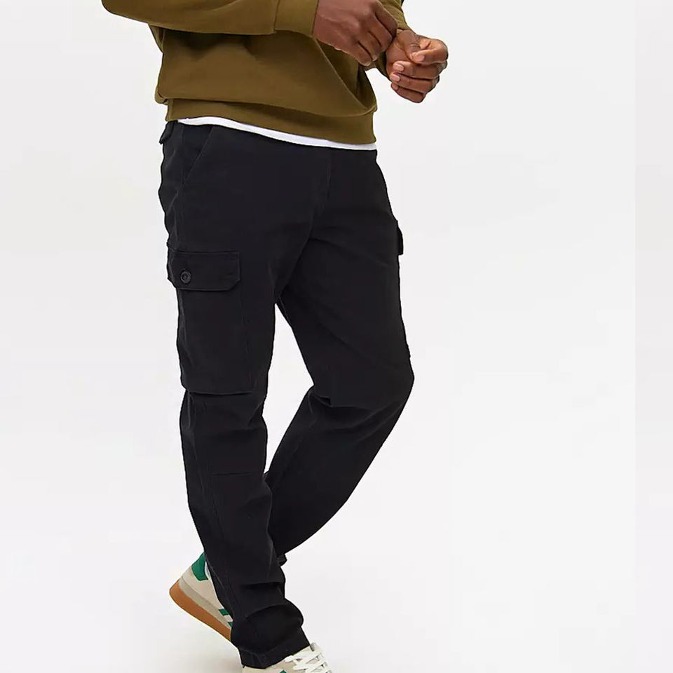 กางเกงคาร์โก้กันน้ำน้ำหนักเบาสำหรับผู้ชาย กางเกงยุทธวิธีหลายกระเป๋า ผ้าแคนวาสสีดำ กางเกงขายาวสำหรับผู้ชาย