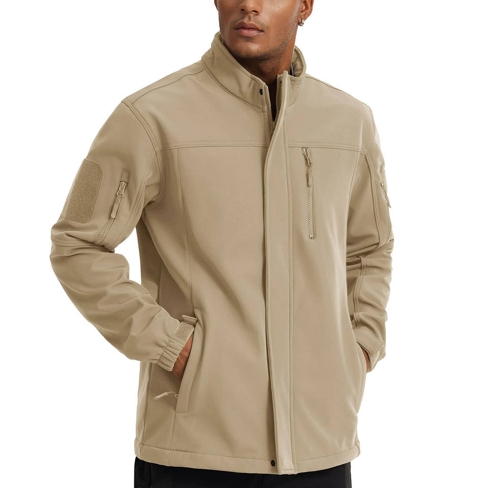 Men's Waterproof Winter Outdoor Soft Shell Jacket From Kidstan Breathable Print Design with Stand Collar and Zipper Closure