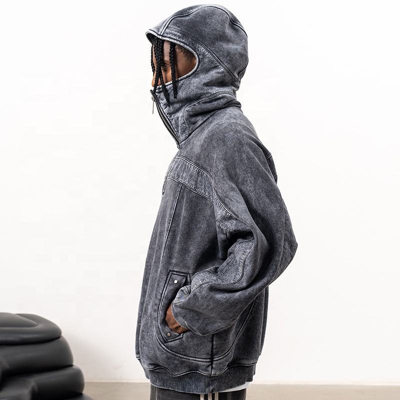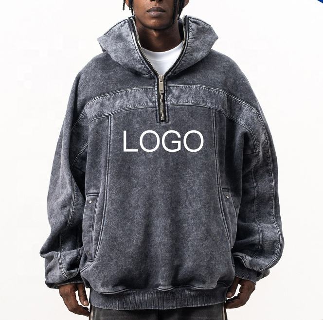 เสื้อฮู้ดผู้ชายแบบรูดซิปหน้าสำหรับผู้ชายเสื้อฮู้ดแบบสวมหัวทรงโอเวอร์ไซส์ทำจากหินกรดซักได้โลโก้ออกแบบได้ตามต้องการ
