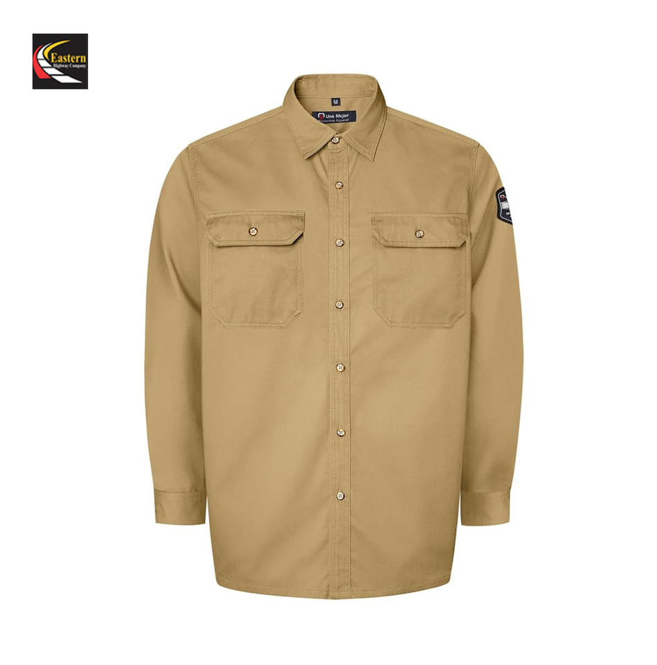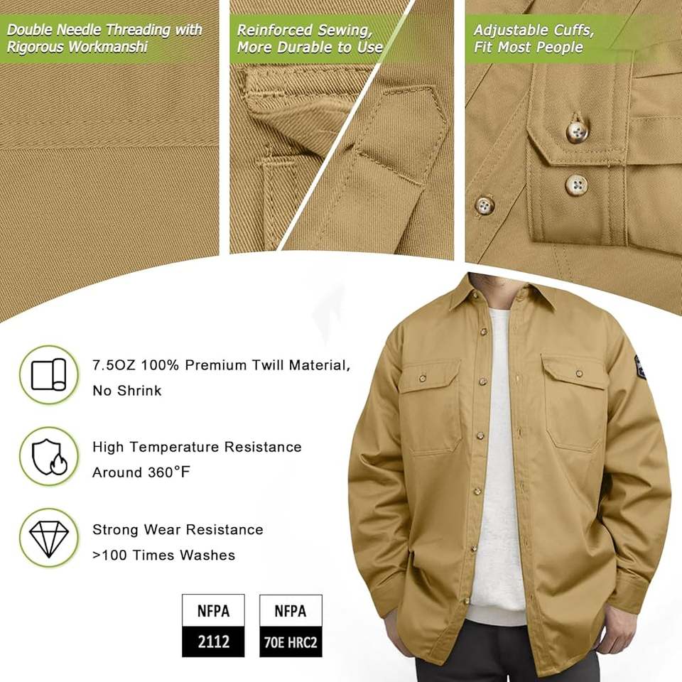 เสื้อทำงานงานเชื่อมสำหรับผู้ชายเสื้อเชิ้ตแขนยาวผ้าฝ้ายทนไฟทนไฟทนไฟแบบตะวันตกสำหรับ100%