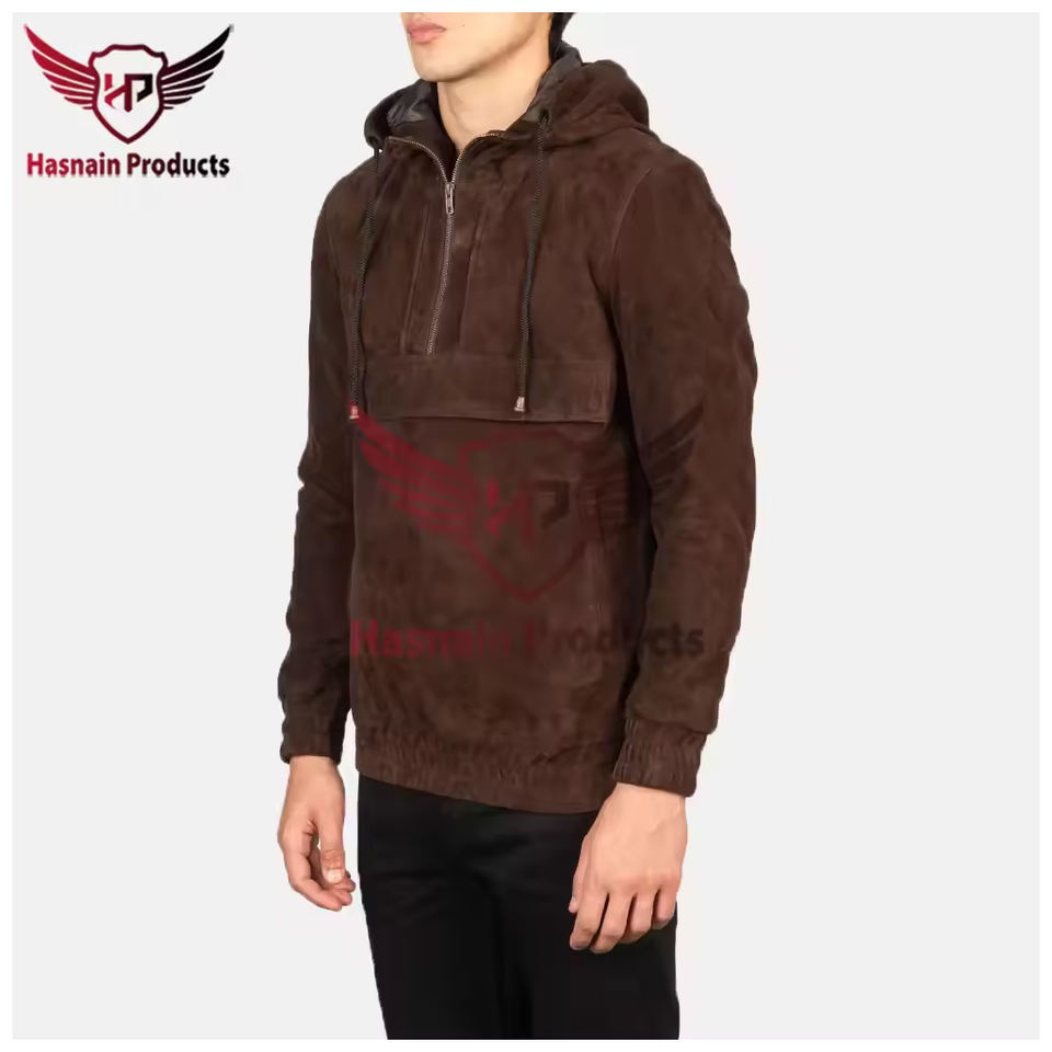 แจ็กเก็ตหนังกลับสไตล์ตะวันตกพร้อมฮู้ดถอดได้ทันสมัยและสะดวกสบายสำหรับฤดูหนาว
