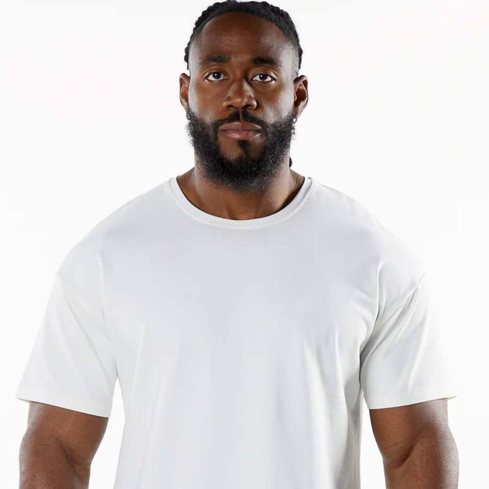 เสื้อยืดผู้ชายสีขาวติดตั้ง Raglan-ผ้าฝ้าย94%, สแปนเด็กซ์6%, คอกลม, แขนสั้น