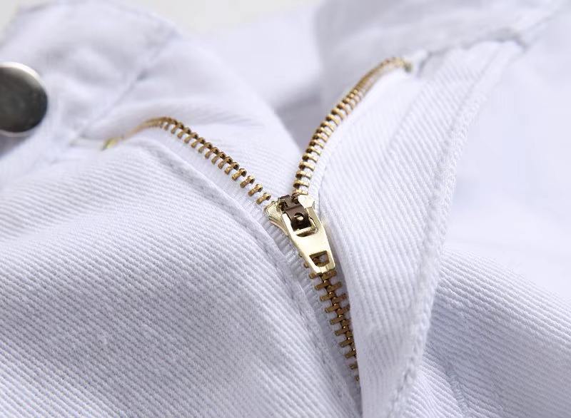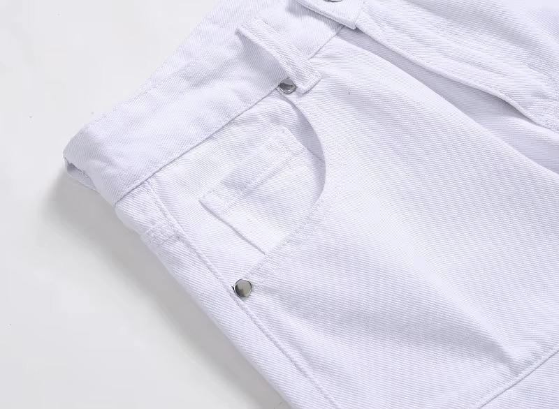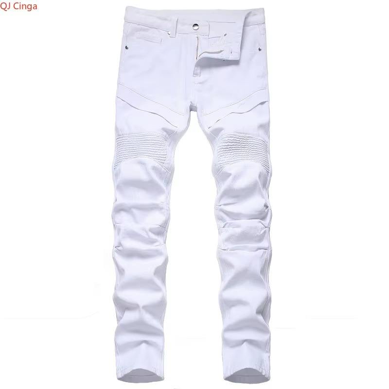 กางเกงยีนส์ผู้ชายสีขาวดำทรงตรง ระบายอากาศได้ดี สไตล์ลำลอง ใส่ได้ทั้งฤดูร้อนและฤดูหนาว แต่งกระดุมและจีบ