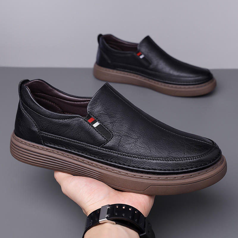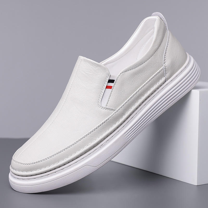 รองเท้าโลฟเฟอร์แบบสวมสีขาวสำหรับผู้ชาย รองเท้าหนังลำลอง ส้นเตี้ย พื้นยาง ทนทาน เหมาะสำหรับใส่พักผ่อน