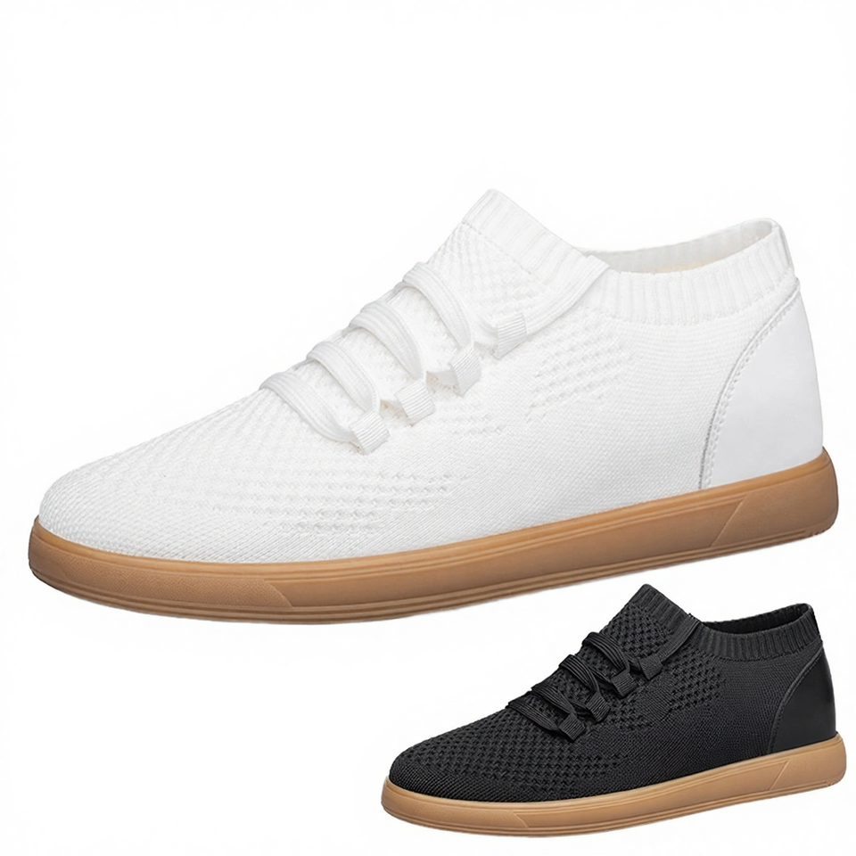 รองเท้าผ้าใบผู้ชายสีขาวสำหรับฤดูร้อน แบบสวมสบาย พื้นยางกันลื่น ระบายอากาศได้ดี เพิ่มความสูงแบบซ่อน