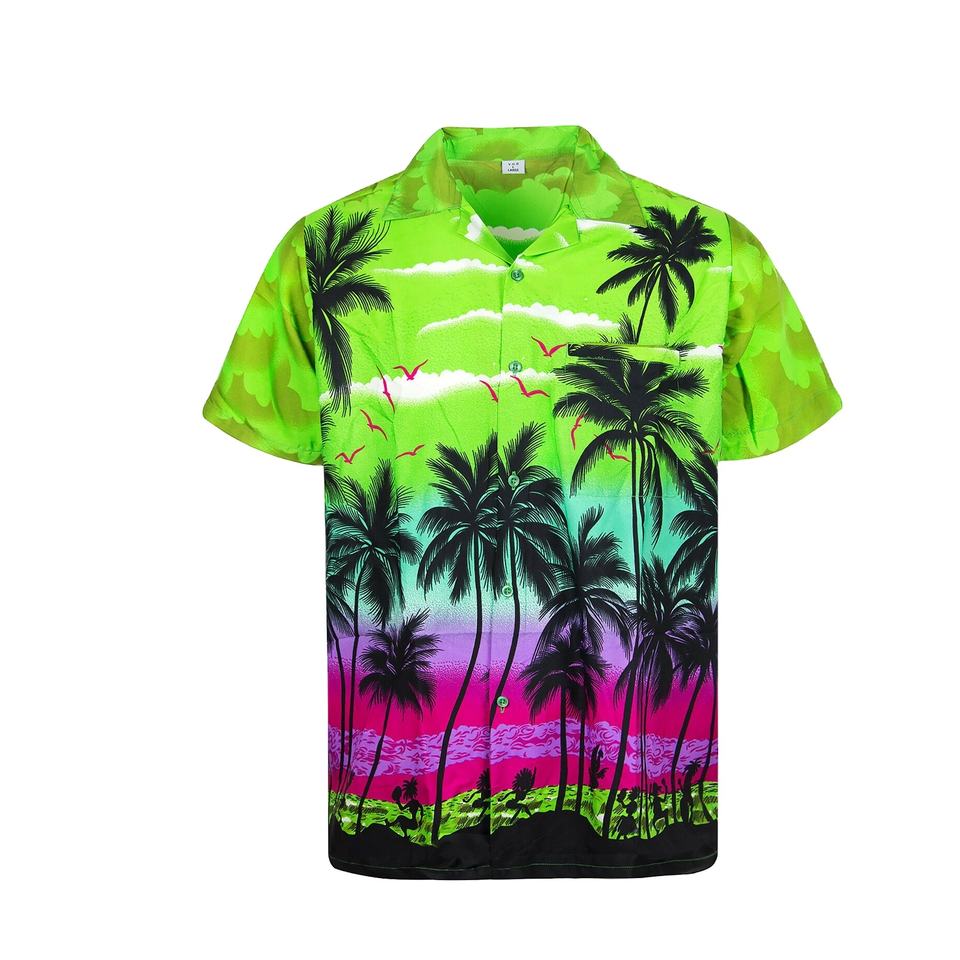 เสื้อเชิ้ตฮาวายชายหาดฤดูร้อนแบบกระดุมพิมพ์ลายตามสั่งขายส่งสำหรับผู้ชาย เสื้อผ้าลำลองฮาวาย ไซส์ใหญ่ กันลม ระบายอากาศได้ดี