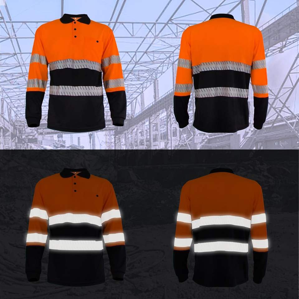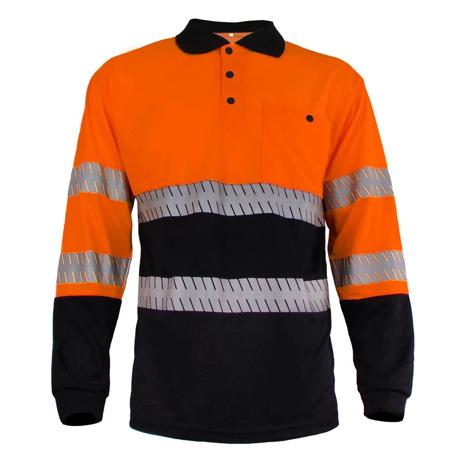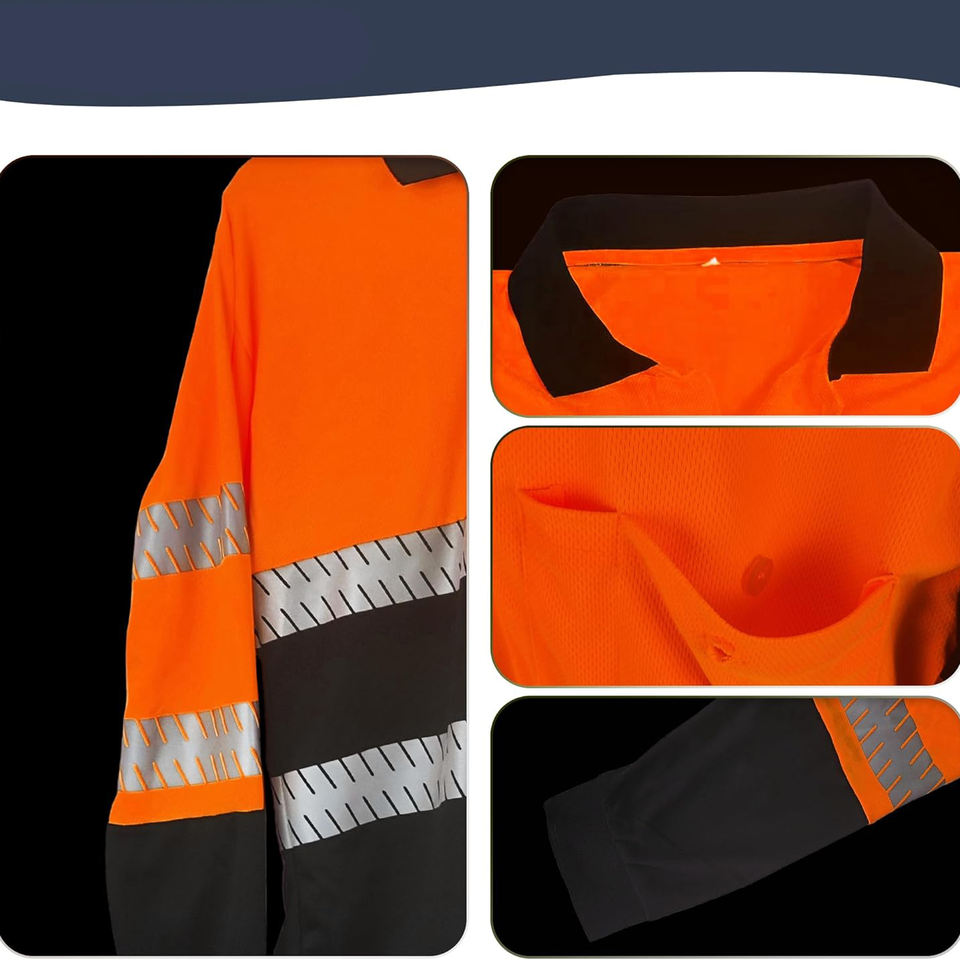 Men's Wholesale Work Shirts Long Sleeve High Visibility Reflective Material Front Pocket Polo Shirt for Workwear