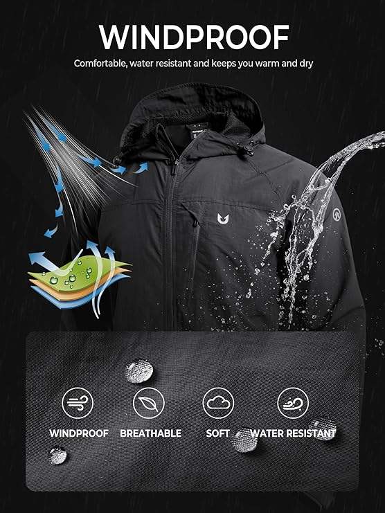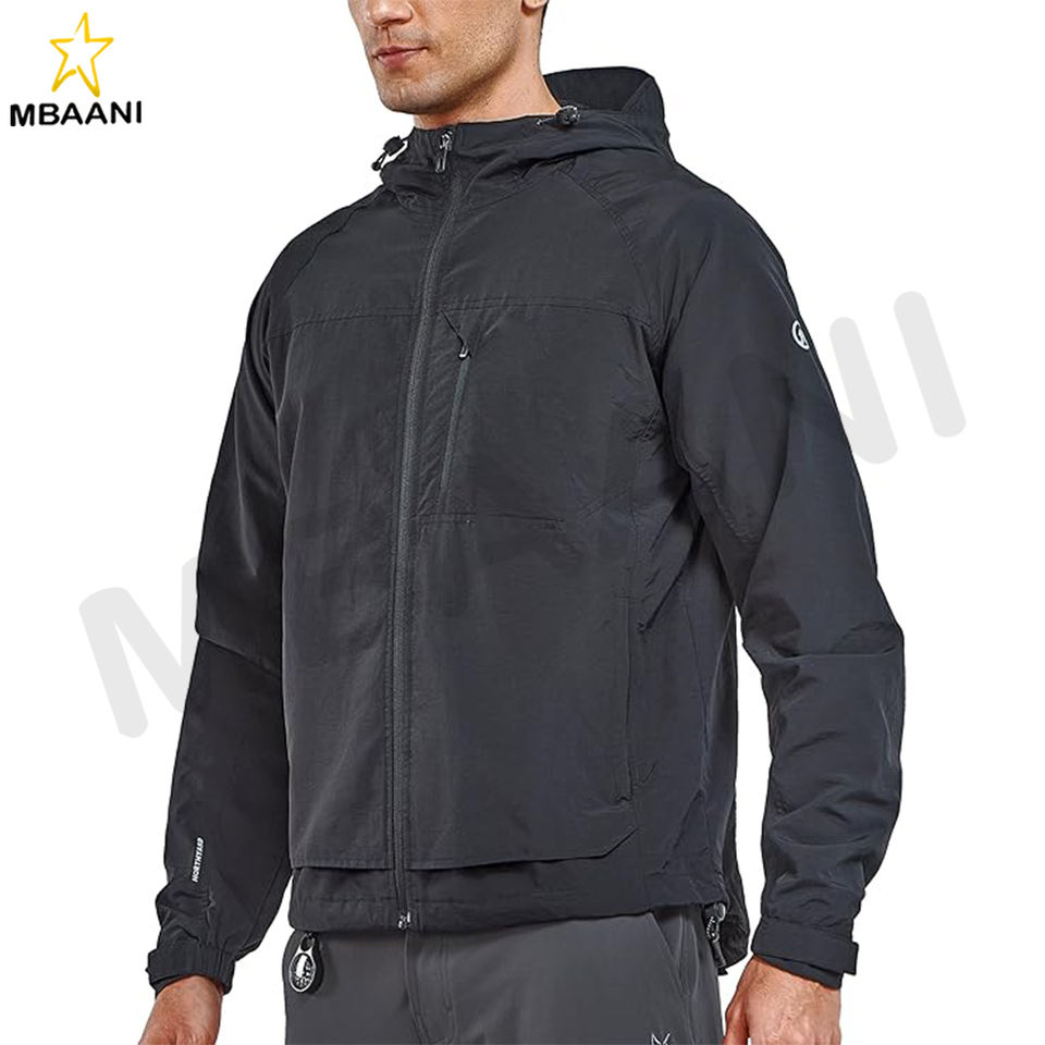 เสื้อแจ็คเก็ตกันลมผู้ชาย น้ำหนักเบา มีฮู้ด กันลม มีกระเป๋าซิป เหมาะสำหรับเดินป่า กิจกรรมกลางแจ้ง กันน้ำ