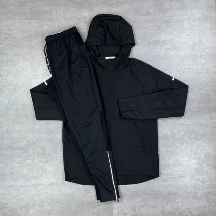ชุดเสื้อแจ็กเก็ตกันลมสำหรับผู้ชายเสื้อมีฮู้ดและกางเกงขาสั้นกันลมสำหรับฤดูใบไม้ร่วง