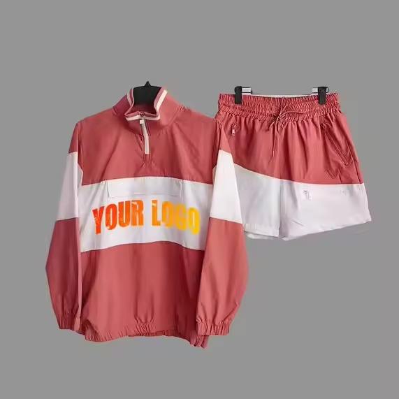 ชุดเซ็ตเสื้อแจ็คเก็ตวินด์เบรกเกอร์และกางเกงขาสั้นผู้ชาย ผ้าโพลีเอสเตอร์ สไตล์สตรีทแวร์ ชุดวอร์ม เสื้อแจ็คเก็ตวินด์เบรกเกอร์และกางเกงขาสั้นสำหรับผู้ชาย ชุดลำลองฤดูร้อน