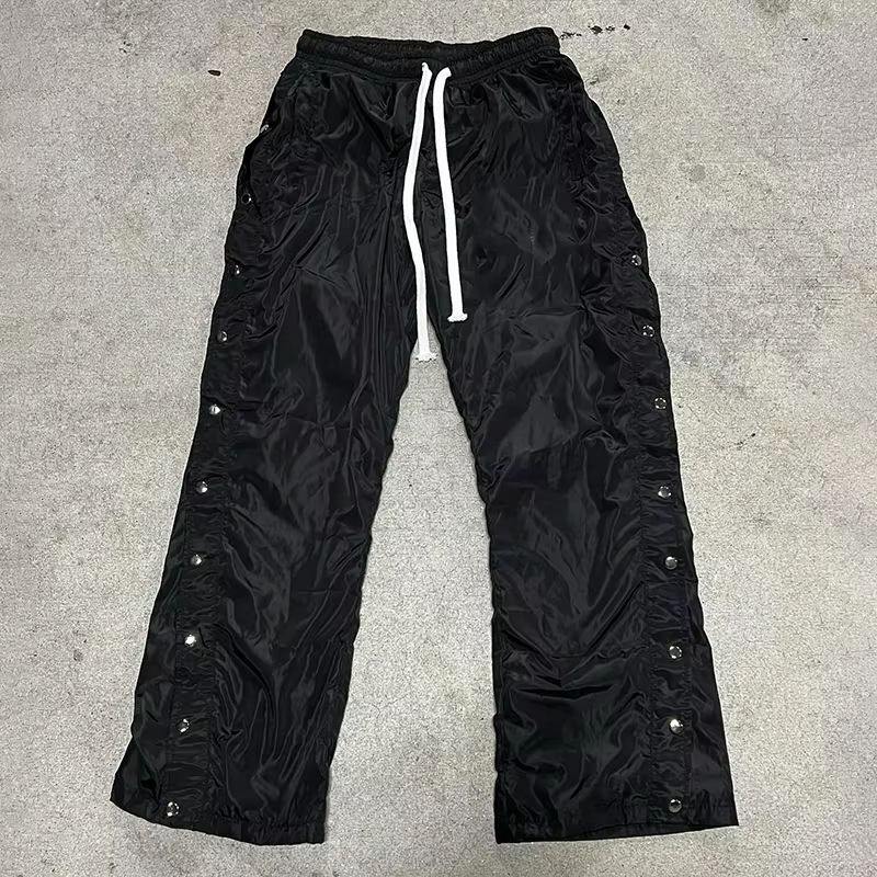 กางเกงไนลอนกันลมสำหรับผู้ชายกางเกงขาบานระบายอากาศได้ดีกระดุมติดด้านข้างกางเกงขาบานแบบหลวมใส่สบายๆสำหรับฤดูร้อนตามสั่งกันน้ำ