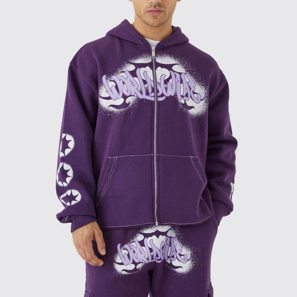 ชุดวอร์มผู้ชายผ้าฝ้ายพิมพ์ลาย 2 ชิ้น สีชมพู มีฮู้ด สไตล์สตรีทแฟชั่นทรงหลวม แบบสั่งทำพิเศษ
