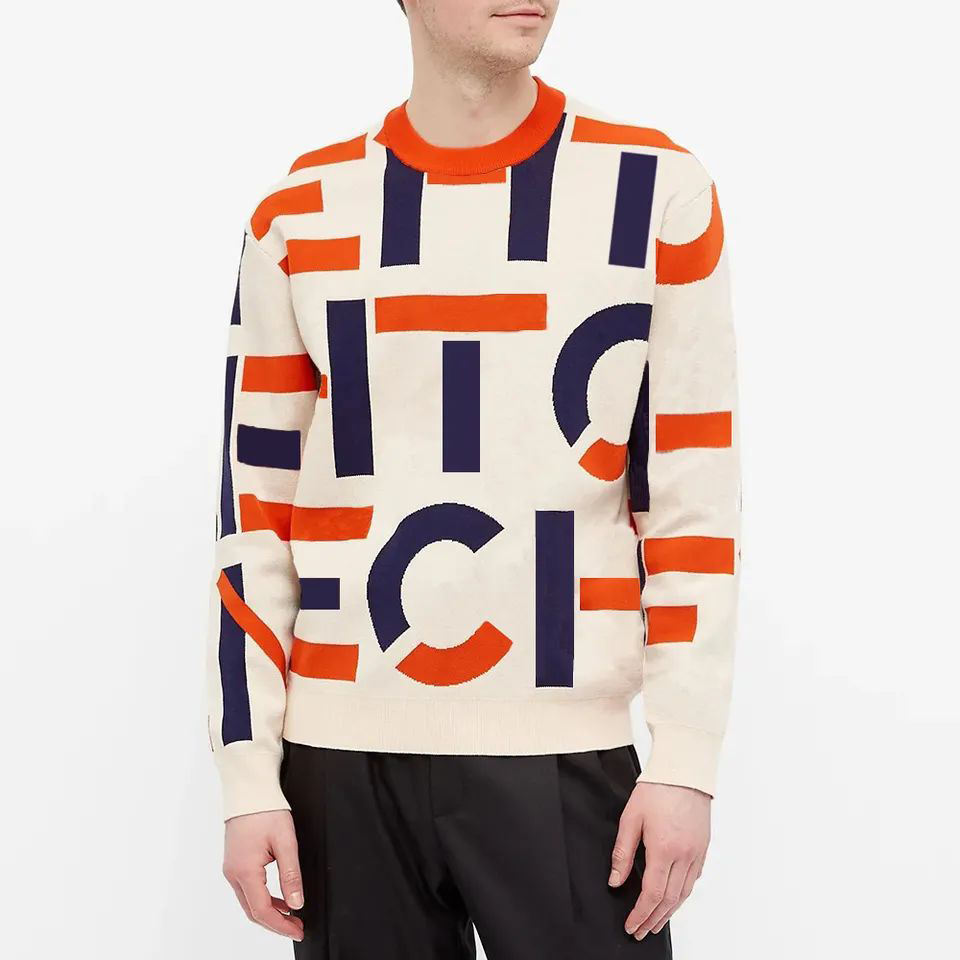 เสื้อสเวตเตอร์คออะคริลิคสำหรับผู้ชาย แขนยาว ลายถัก ดีไซน์ลำลอง พร้อมโลโก้ตัวอักษรด้านหน้าและด้านหลัง รับออกแบบโลโก้ตามสั่ง
