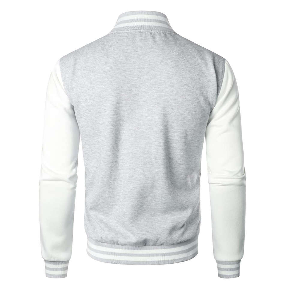 เสื้อแจ็คเก็ตเบสบอลผู้ชายสำหรับฤดูหนาว สไตล์ลำลองแบบสตรีท ดีไซน์ปักลายวาร์ซิตี้ สีพื้นเคลือบผิว