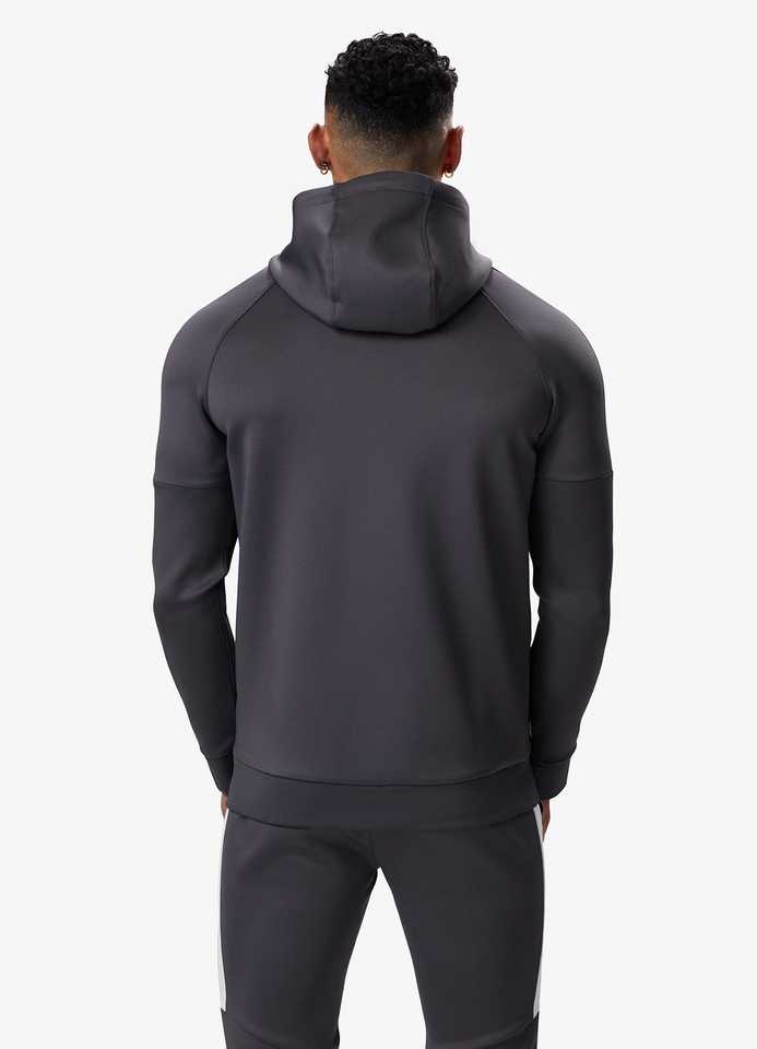 ชุดกีฬาผู้ชายแขนยาวมีซิปมีฮู้ดและกางเกงชุดออกกำลังกายสองชิ้นสีล้วนสำหรับฤดูหนาว