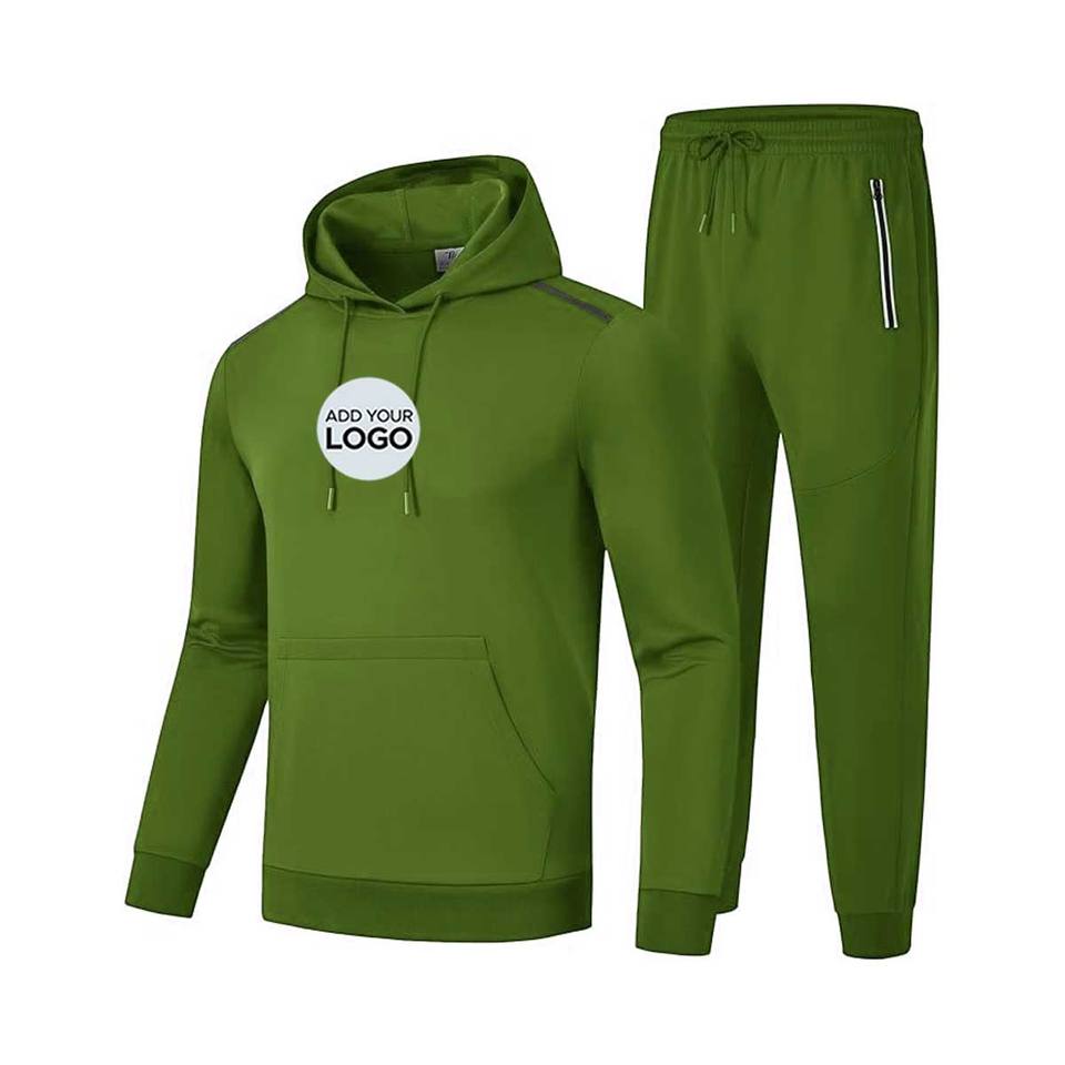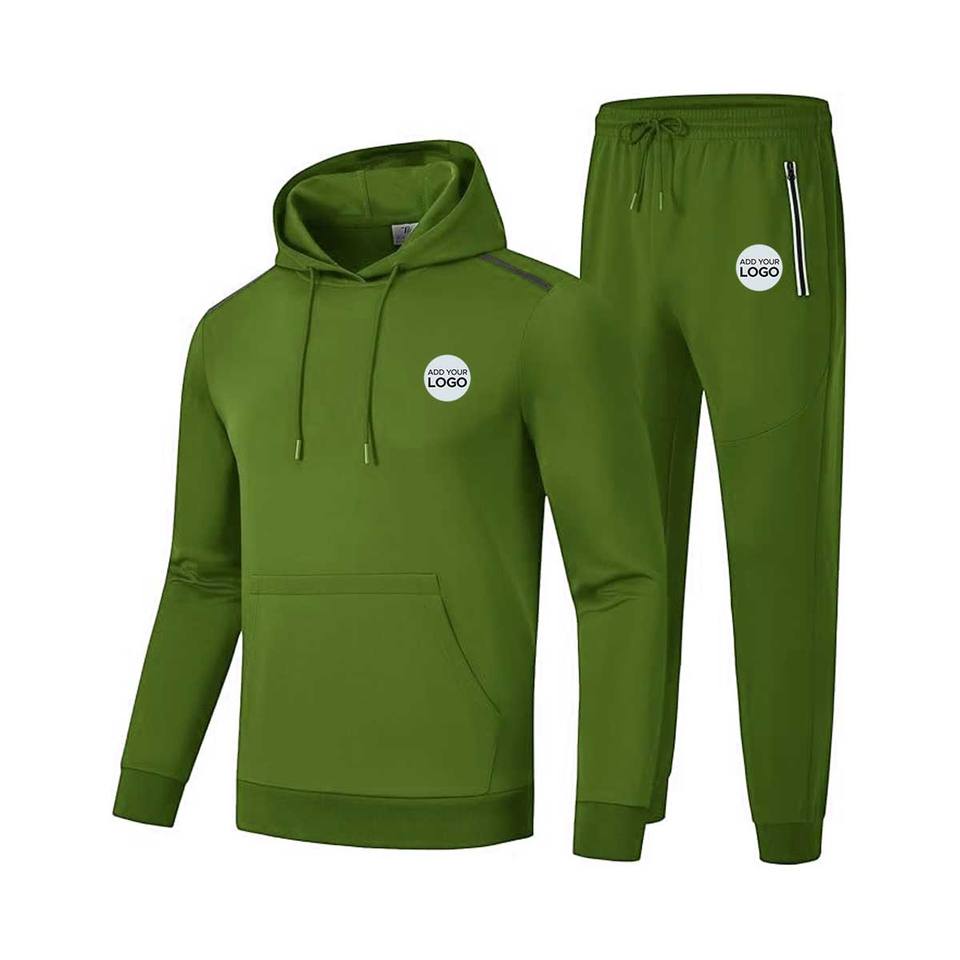 ชุดวอร์ม2ชิ้นผ้าฟลีซสีล้วนสำหรับผู้ชายชุดออกกำลังกายแขนยาวแบบสวมหัวกางเกงโพลีเอสเตอร์/ ผ้าฝ้ายแบบลำลองสำหรับฤดูหนาว
