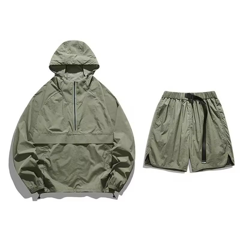 ชุดเซ็ตเสื้อแจ็คเก็ตและกางเกงขาสั้นลำลองสำหรับผู้ชาย ผ้าโพลีเอสเตอร์/คอตตอน แห้งเร็ว มีซิป สะท้อนแสง รุ่น 2026