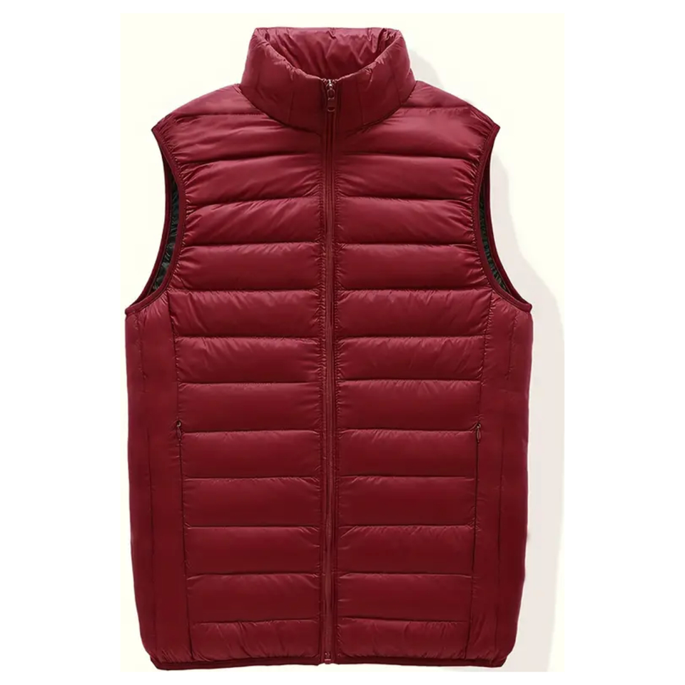 เสื้อกั๊กผู้ชายสำหรับฤดูหนาว แบบสั่งทำพิเศษ น้ำหนักเบา ผ้าแคนวาส บุใยฝ้ายแบบพัฟเฟอร์ แบบมีซับใน ไม่มีแขน คอตั้ง