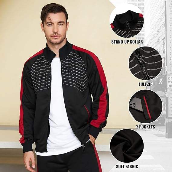 ชุดวอร์มผู้ชายแบบซิปเต็มตัว ผ้าฝ้าย 100% กางเกงวอร์มขายาว แห้งเร็ว กันลม เหมาะสำหรับออกกำลังกาย ใส่ได้แม้ตั้งครรภ์ ไร้ตะเข็บ