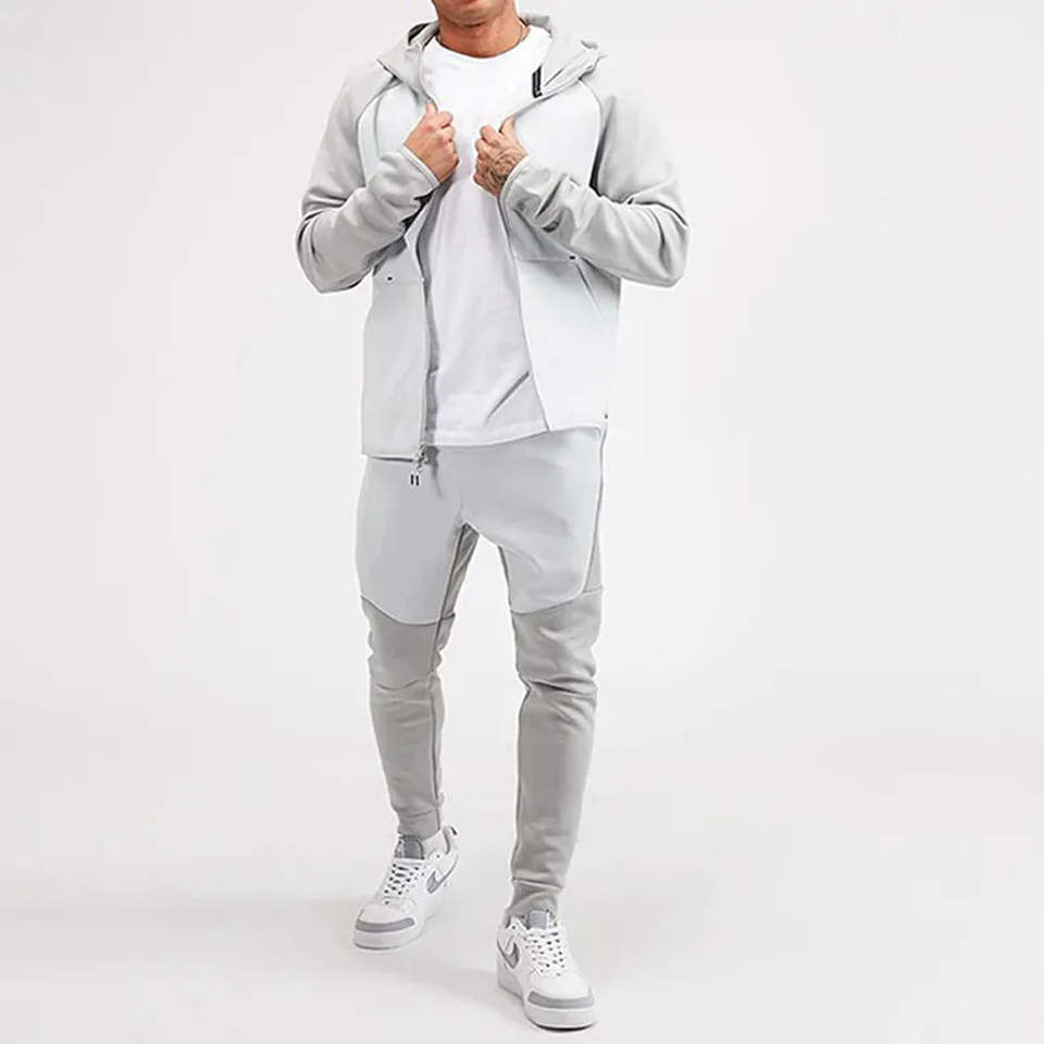 ชุดวอร์มมีซิปสีเทาสำหรับผู้ชายชุดวอร์มมีฮู้ดชุดวิ่งกางเกงวอร์มผ้าฝ้าย100% เป็นมิตรต่อสิ่งแวดล้อม2026ชุดกีฬาผ้าฟลีซ