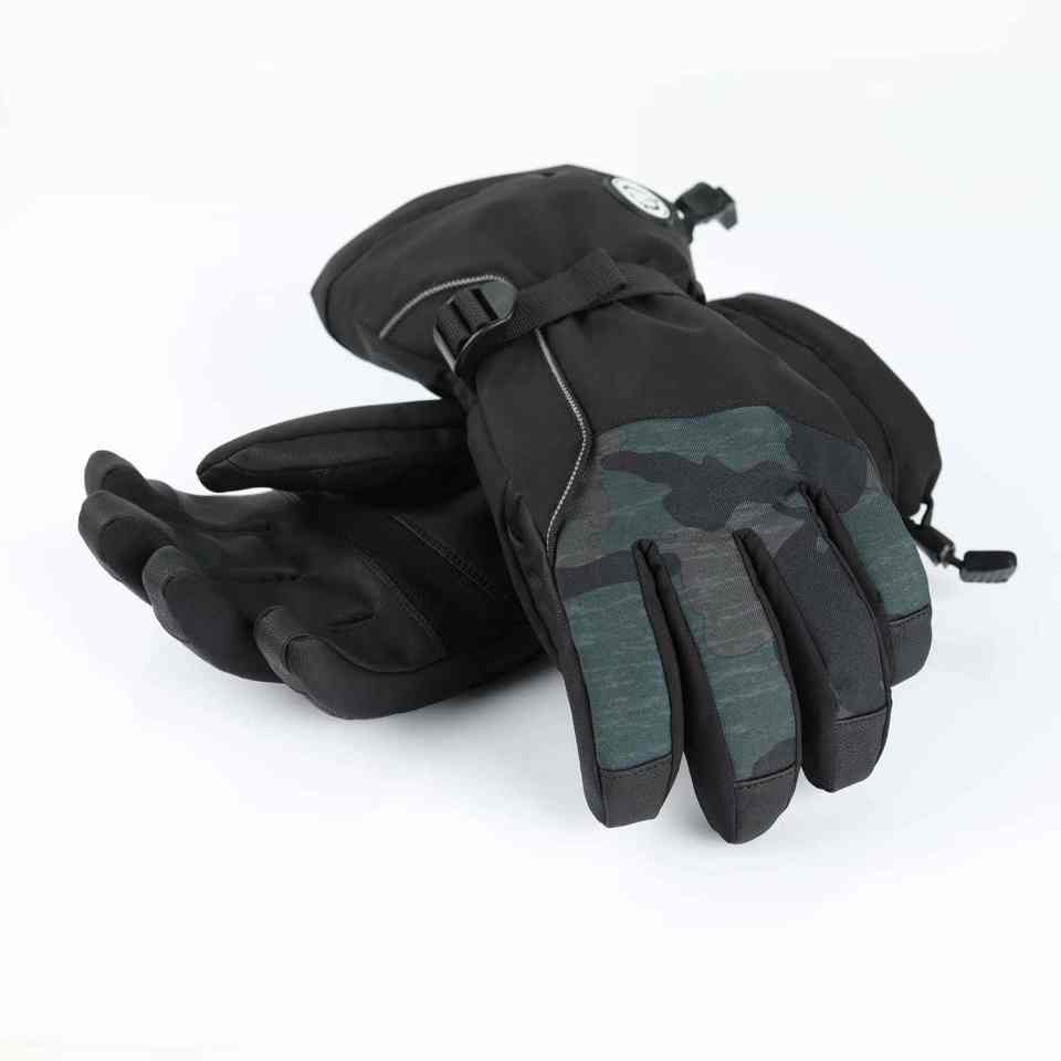ถุงมือสกีทำจากหนังให้ความอบอุ่นในฤดูหนาวของผู้ชายพร้อมเทคโนโลยีหน้าจอสัมผัสกันน้ำและออกแบบให้มีนิ้วมือสำหรับเล่นสโนว์บอร์ดและสกี
