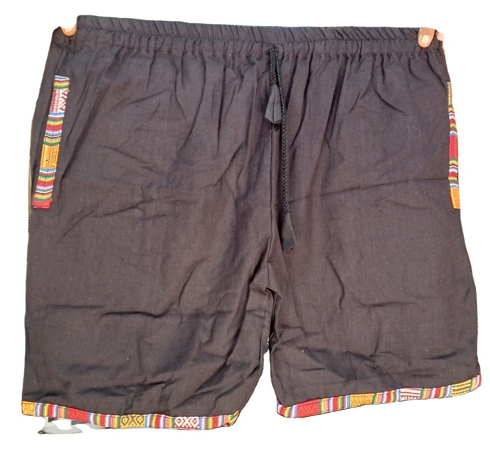 กางเกงขาสั้นป่านผู้ชายผ้าฝ้ายเนปาลตกแต่งลวดลายทางการสไตล์ฮิปปี้โบฮีเมียน