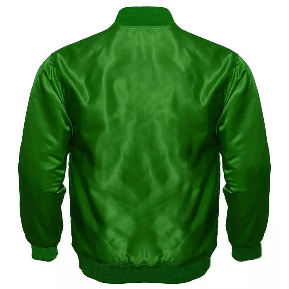 เสื้อแจ็คเก็ตเบสบอลทรงบอมเบอร์ผ้าซาตินสำหรับผู้ชาย สไตล์ไฮสตรีทฤดูหนาว ปักโลโก้ตามสั่ง คอตั้ง กันน้ำ กันลม