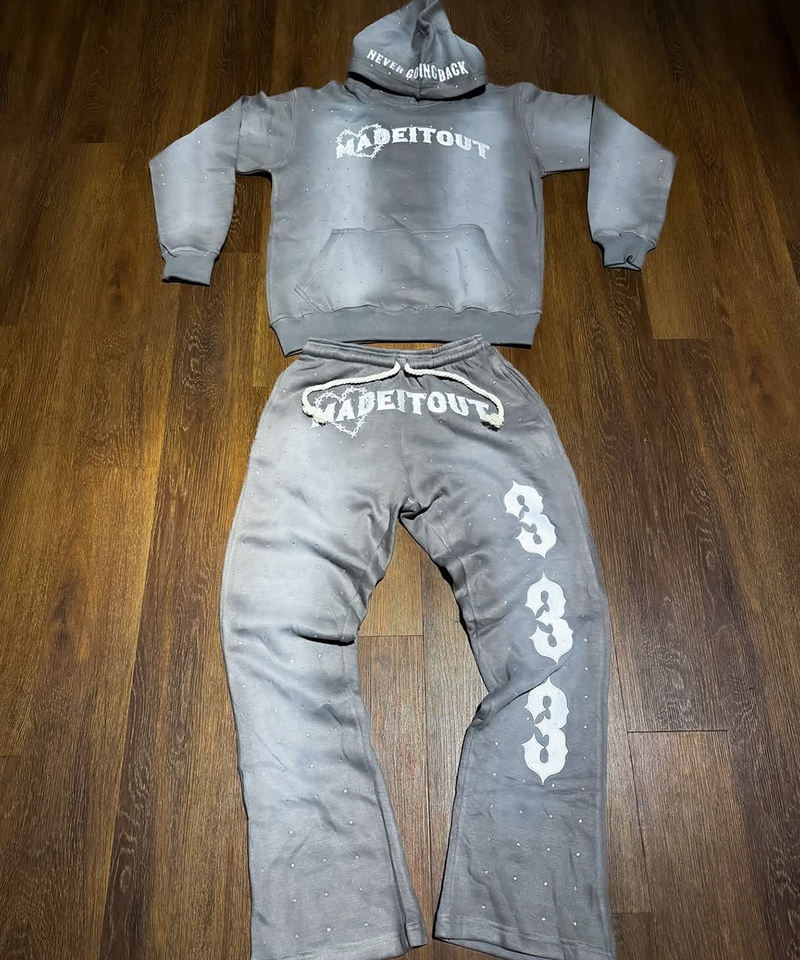 ชุดวอร์มผู้ชายแบบมีฮู้ด ลายพิมพ์ด้านหน้า ประดับคริสตัล ระบายอากาศ กันลม ผ้าฟลีซ สไตล์สตรีทแวร์ ลุคสปอร์ต 100%