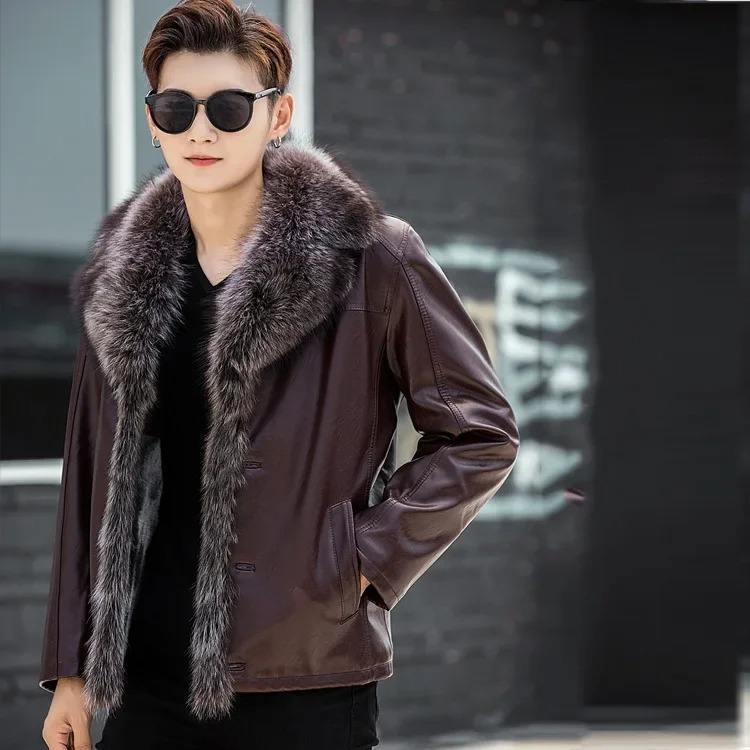 เสื้อแจ็คเก็ตฤดูหนาวผู้ชายแบบกระดุมแถวเดียว หนา อุ่น คอปกพับได้ แฟชั่น หนังแกะ ผ้าแคนวาส กันน้ำ ระบายอากาศได้