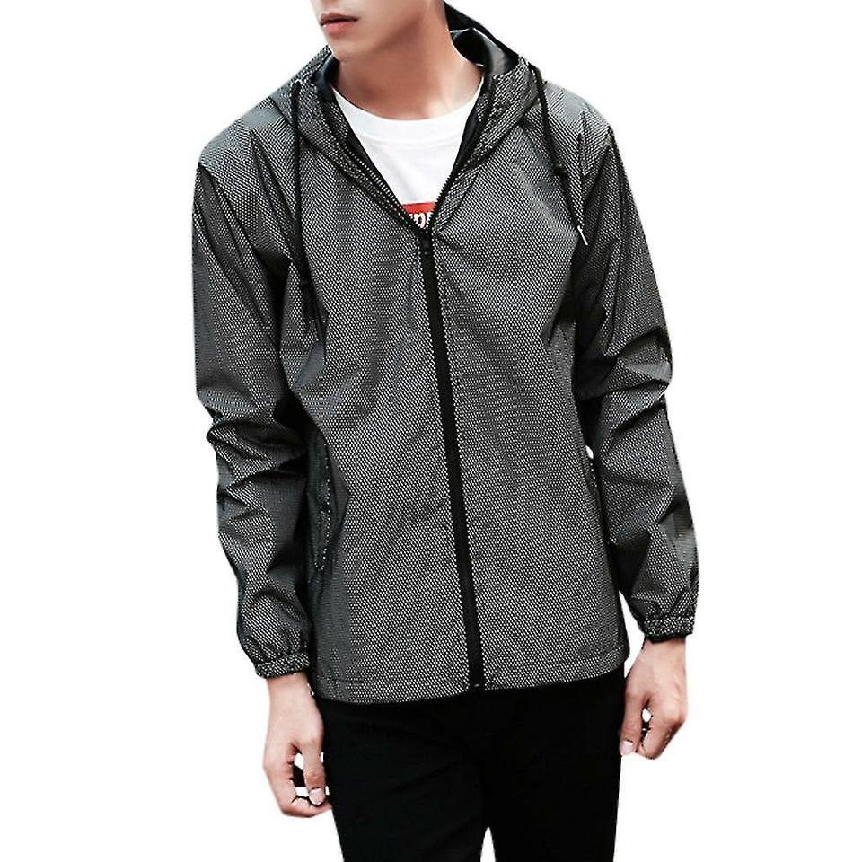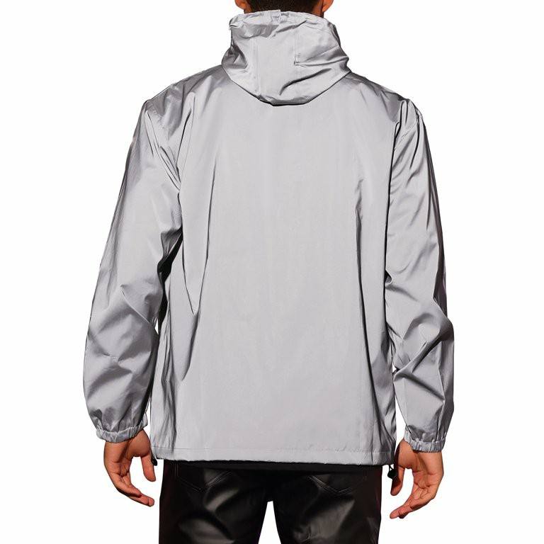 แจ็กเก็ตฤดูหนาวของผู้ชายมีซิปกันน้ำวัสดุผ้าใบสะท้อนแสงระบายอากาศปกสี่เหลี่ยมมีกระเป๋าป้องกันฝน