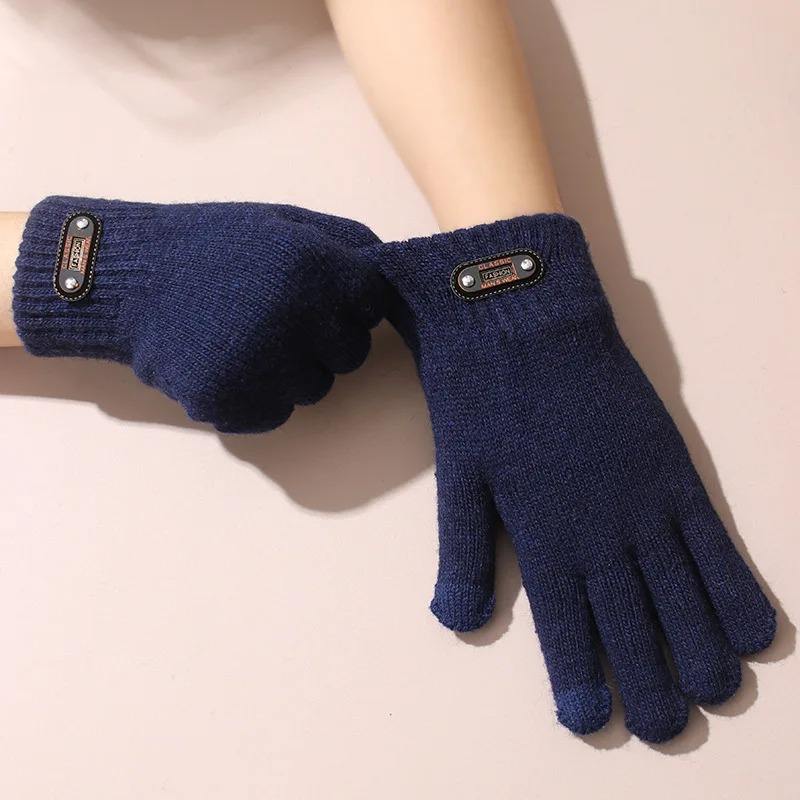 ถุงมือกีฬาฤดูหนาวสำหรับผู้ชาย ถักนิตติ้ง ใช้กับหน้าจอสัมผัสได้ เป็นมิตรกับสิ่งแวดล้อม พิมพ์ลายด้วยเทคนิคการถ่ายเทความร้อน ความยาวระดับข้อมือ