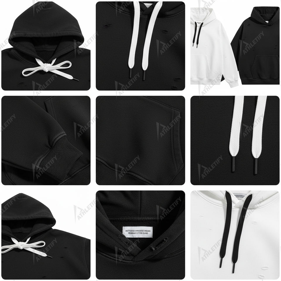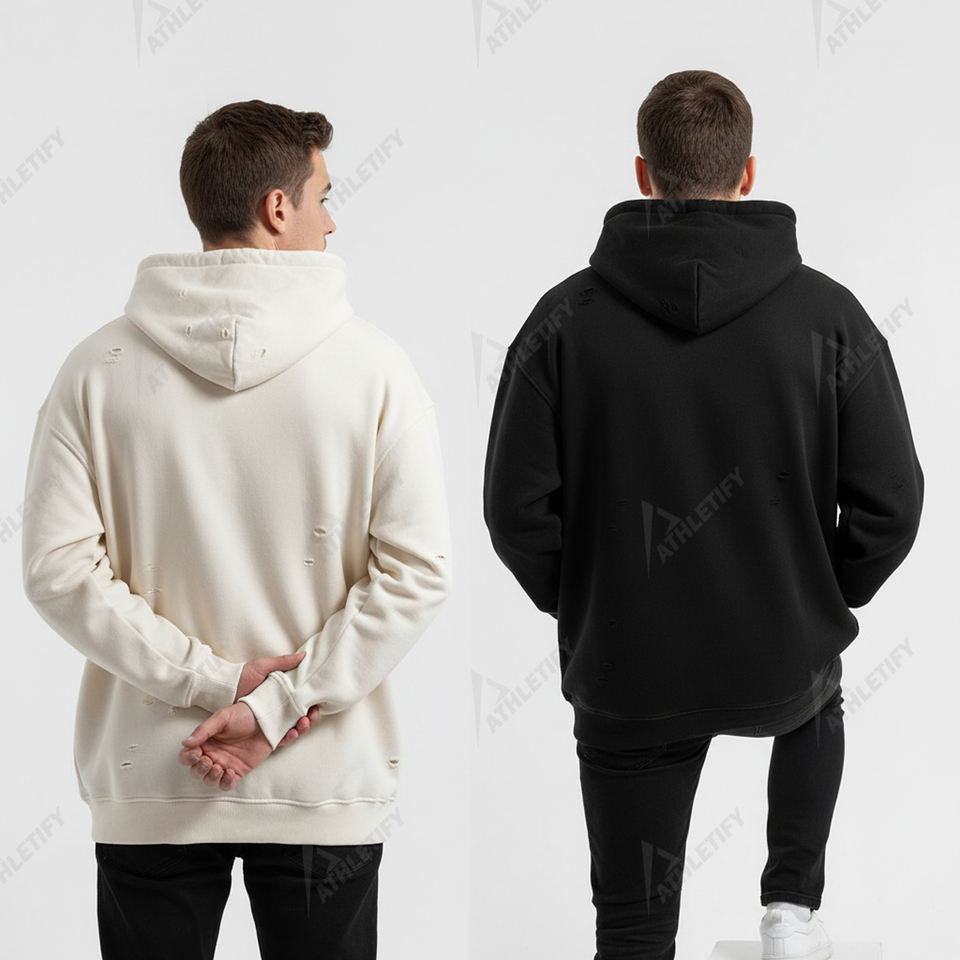 เสื้อมีฮู้ดผูกย้อมสีสำหรับผู้ชาย, เสื้อมีฮู้ดผูกกับรายละเอียดขาดเสื้อสวมหัวทรงหลวมระบายอากาศสำหรับสวมใส่สบายสไตล์สตรีทฤดูหนาว