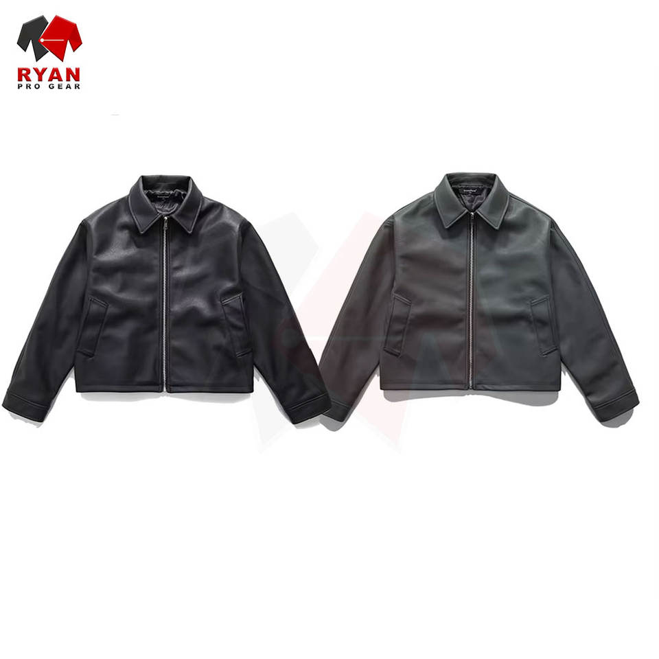 แจ็คเก็ตหนังผู้ชายสำหรับฤดูหนาว หนังแท้ สีพื้น สไตล์โดดเด่น ผลิตโดยโรงงาน OEM ODM