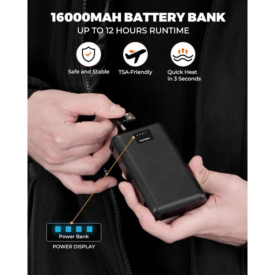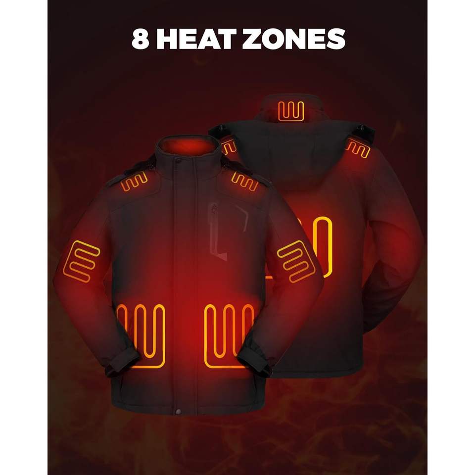 เสื้อแจ็กเก็ตอุ่นไฟฟ้าสำหรับผู้ชาย, เสื้อแจ็กเก็ตอุ่นขนาด16000มิลลิแอมป์ต่อแบตเตอรี่8โซนให้ความร้อนผ้านุ่มสำหรับหน้าหนาว