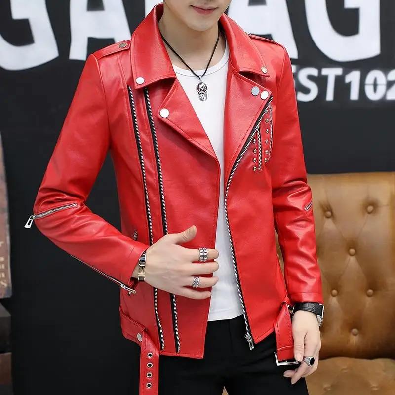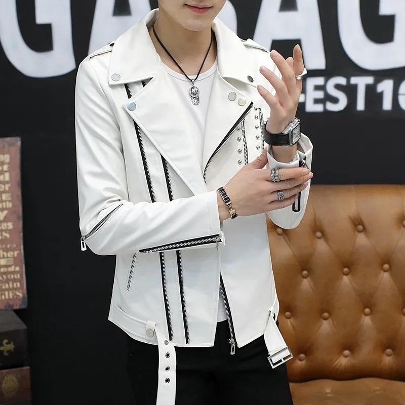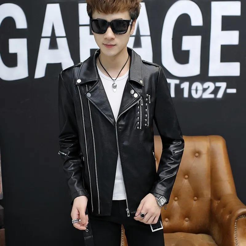 แจ็กเก็ตหนังพียูสำหรับผู้ชายมีปกมีซิปเสื้อสไตล์ร็อคแนวพังก์แบบอังกฤษอบอุ่นแบบลำลองสำหรับขี่มอเตอร์ไซค์ฤดูหนาว