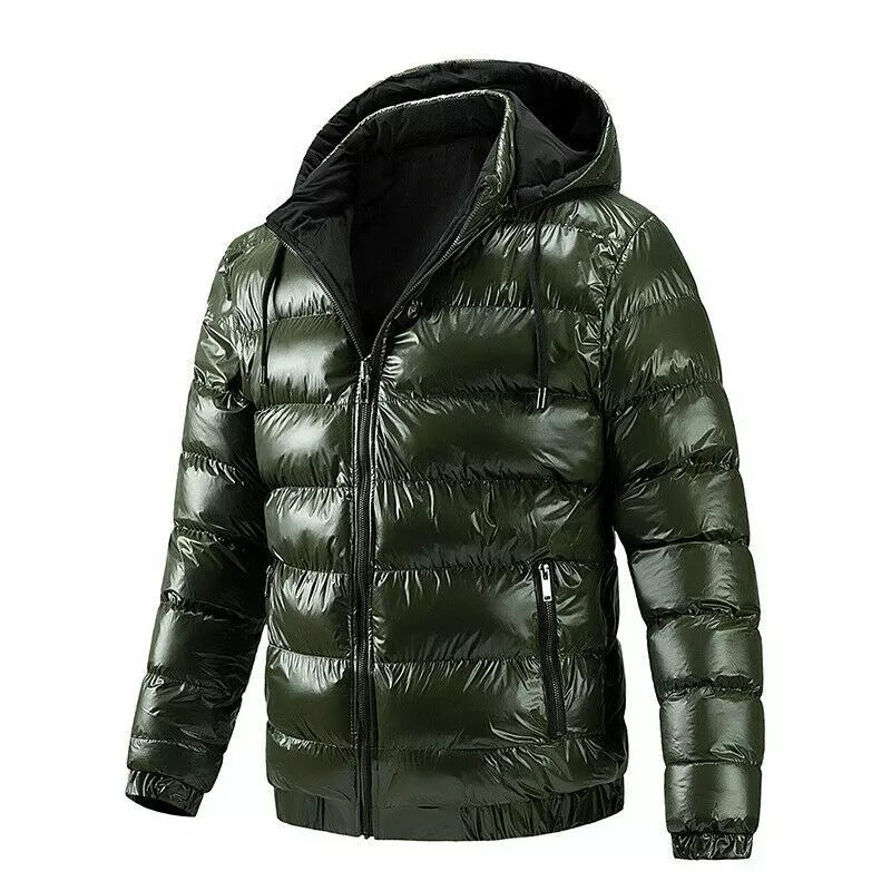 เสื้อแจ็คเก็ตพัฟเฟอร์ฤดูหนาวสำหรับผู้ชาย ผลิตตามสั่ง คุณภาพสูง ระบายอากาศได้ดี เคลือบผิว ดีไซน์ล่าสุด แขนยาว มีฮู้ด ปกกันน้ำด้านหน้า