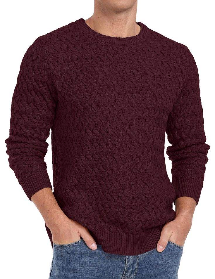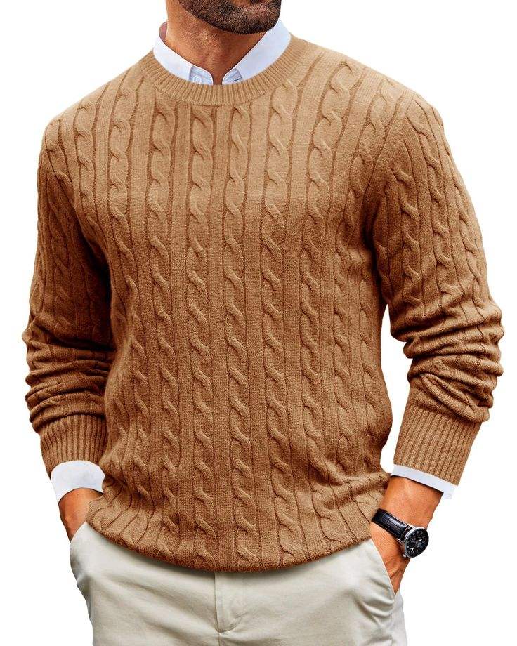 เสื้อสเวตเตอร์ไหมพรมถักลายเคเบิ้ลสำหรับผู้ชาย ฤดูหนาว ผ้าฝ้าย 100% ไม่เป็นขุย ไม่ยับ โลโก้ด้านหน้า คอกลม แขนยาว แบบสั่งทำ