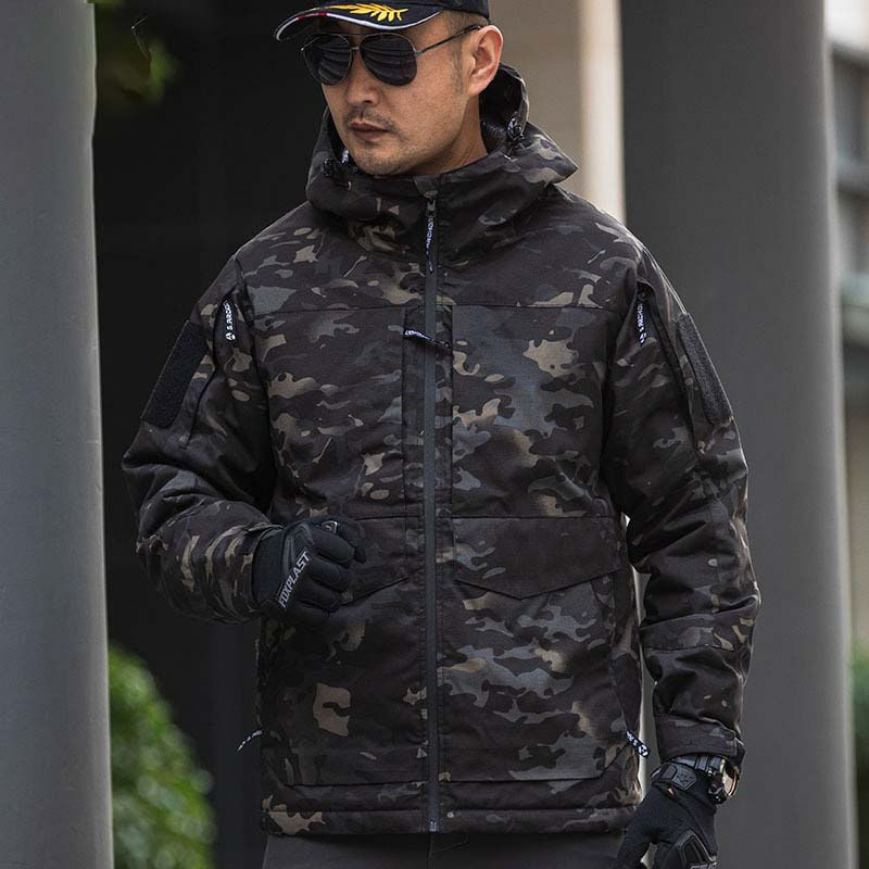 เครื่องแบบยุทธวิธีลายพรางหนังฉลามสีแดงสำหรับผู้ชายแจ็คเก็ตบุผ้าฟลีซกันน้ำสีดำบอมเบอร์สไตล์ทางการสำหรับฤดูหนาว