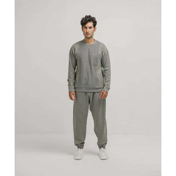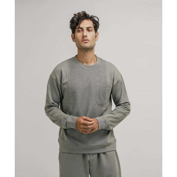 เสื้อสเวตเชิ้ตผู้ชายผ้าฝ้ายเฟรนช์เทอร์รี่ 100% แบบกลับด้านได้ สีโนเบิลและสีเขียวเซจ สำหรับฤดูหนาว