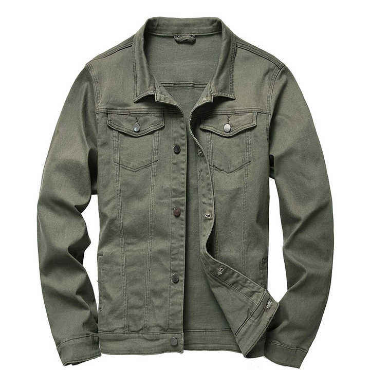 แจ็คเก็ตยีนส์ผู้ชาย คอตั้ง ปักโลโก้ด้านหน้า ผ้าฝ้าย 100% รับผลิตแบบ OEM ขายส่ง ปรับแต่งได้ สไตล์ลำลอง ป้องกันรังสียูวี ระบายอากาศได้ดี