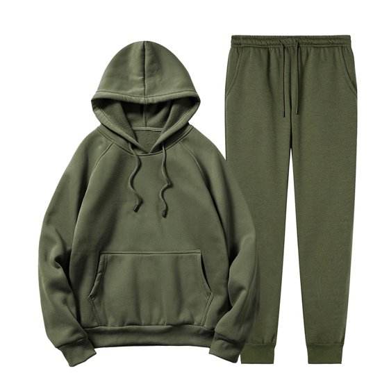 ชุดสเวตเตอร์แขนยาวมีฮู้ดและกางเกงวิ่งขากว้างสำหรับฤดูหนาวของผู้ชาย