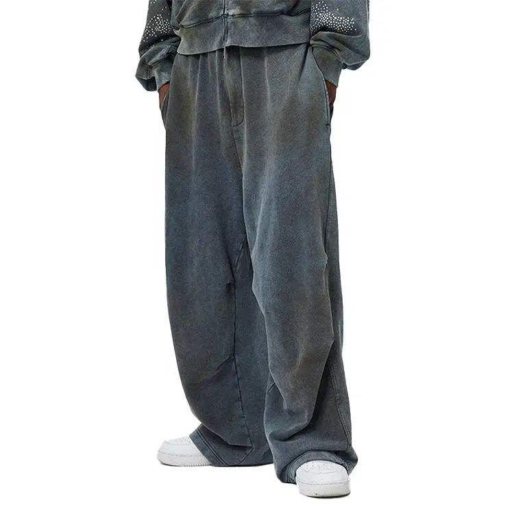 ชุดวอร์มผู้ชายทรงปกติ สไตล์วินเทจ ล้างสีแบบแอซิด ขากระบอก แต่งคริสตัล ตัดเย็บด้วยเชือกผูก ปิดด้วยเชือกผูก ซับในผ้าฟลีซ แห้งเร็ว