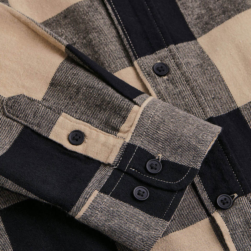 เสื้อแจ็คเก็ตผ้าแฟลนเนลอุ่นๆสำหรับผู้ชาย แขนยาว บุขนด้านใน ลายสก็อต พร้อมกระดุมนุ่ม เสื้อแฟลนเนลหนา มีโลโก้ด้านหน้า