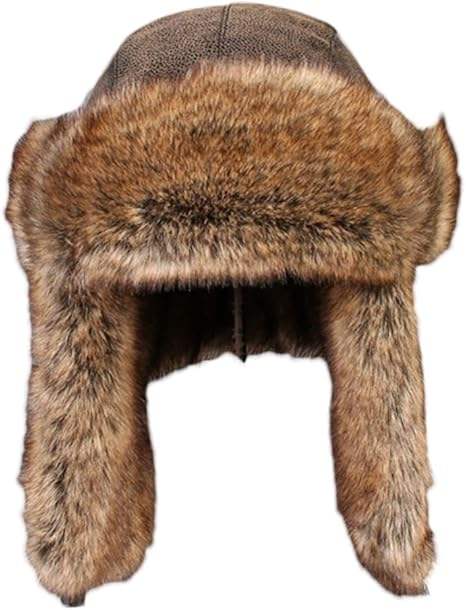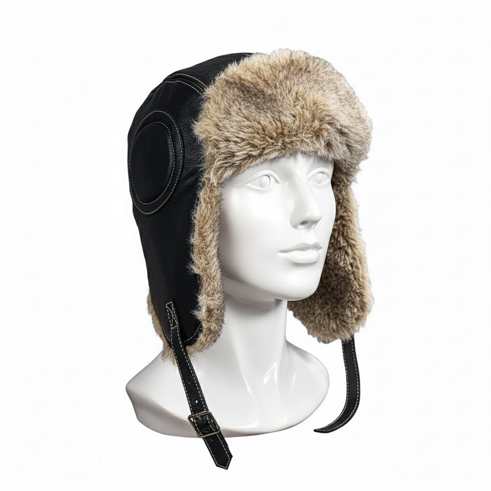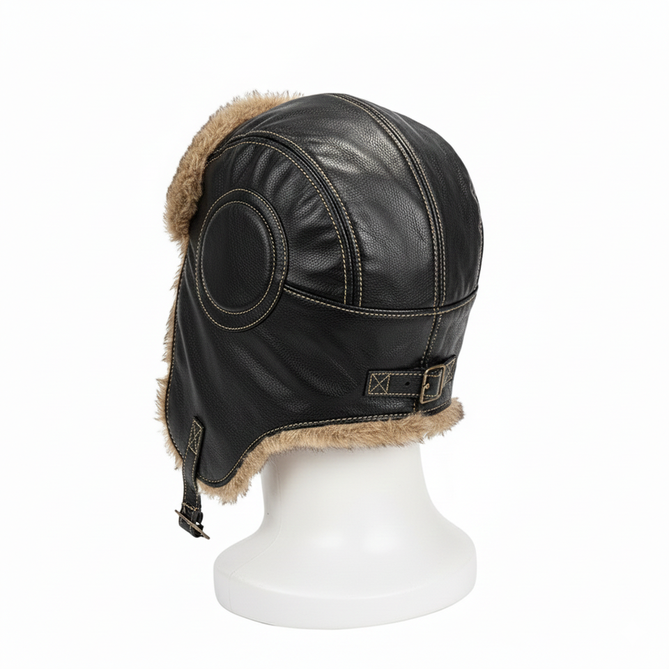 หมวกนักบินหนังแท้บุขนเทียมสำหรับผู้ชาย ใส่กันหนาว กันน้ำ เหมาะสำหรับเล่นกีฬา งานปาร์ตี้ และตกปลา