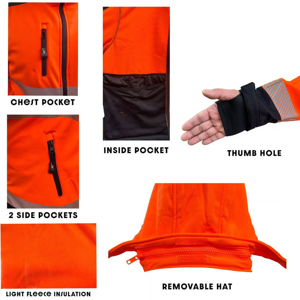 เสื้อแจ็คเก็ตทำงานฤดูหนาวสำหรับผู้ชาย แบบสะท้อนแสง มองเห็นได้ชัดเจน วัสดุกันน้ำ พร้อมซิป สำหรับใช้งานกลางแจ้ง