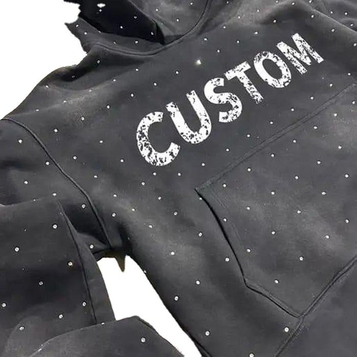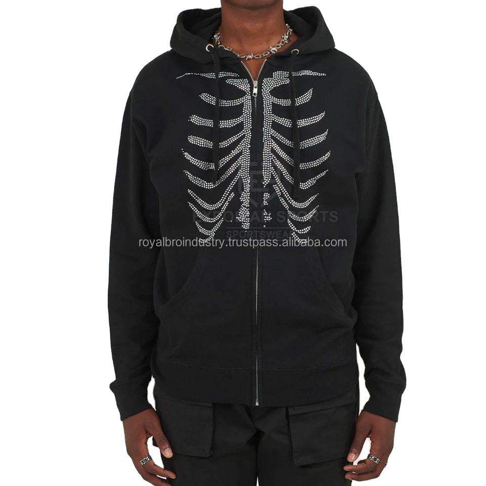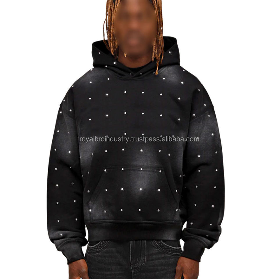 เสื้อฮู้ดซิปผู้ชายสไตล์วินเทจ Y2K ผ้าหนา 400gsm แต่งลายปักแบบดิสเทรส ประดับคริสตัล ทรงบ็อกซี่แบบครอป ดีไซน์ทันสมัย ผลิตจากผ้าฝ้าย 100% พิมพ์ลายดิจิทัล