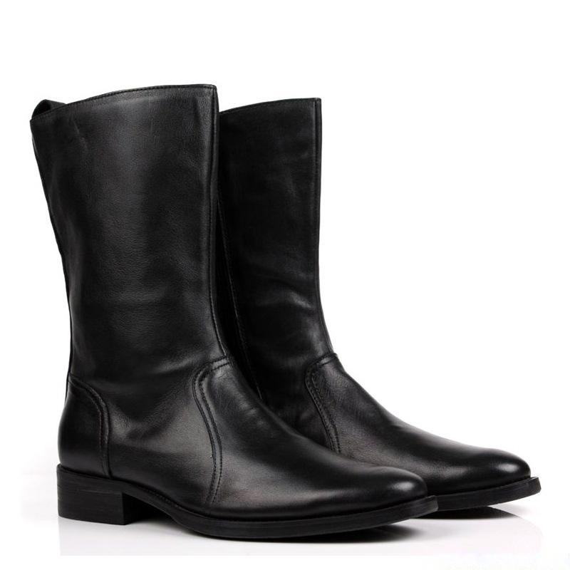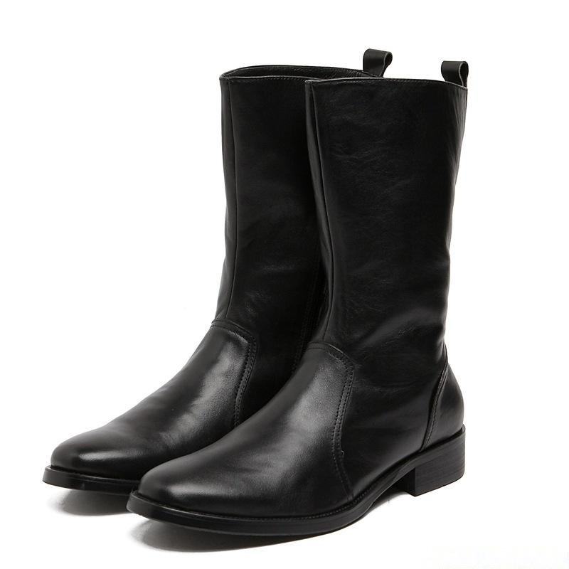 รองเท้าบูทผู้ชายสำหรับฤดูหนาวและฤดูใบไม้ร่วง หนังวัวแท้ บุหนังแท้ อุ่นและมีสไตล์ รองเท้าบูททรงสูง