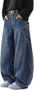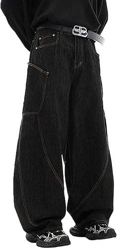กางเกงยีนส์ทรงกระบอกขาบานสำหรับผู้ชายและผู้หญิง สไตล์สตรีทแวร์ ทรงหลวม ขาตรง เอวยางยืด สไตล์ฮิปฮอป สีพื้น ผ้าเบา