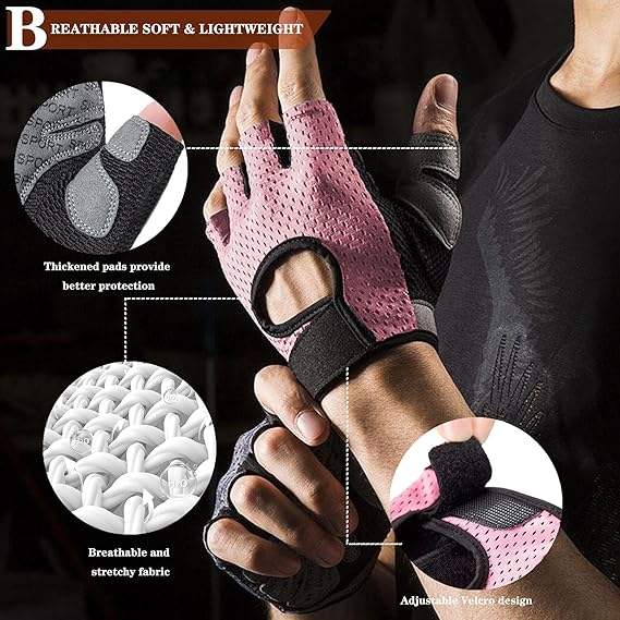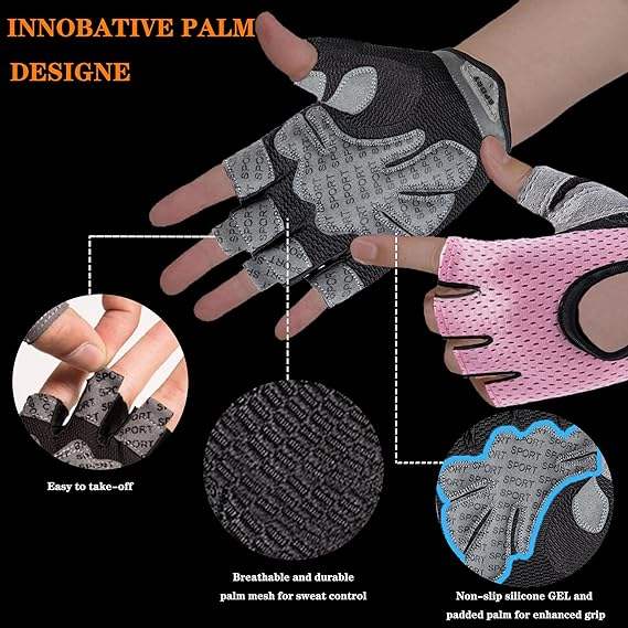 ถุงมือปั่นจักรยานแบบครึ่งนิ้วสำหรับผู้ชาย/ผู้หญิง ยืดหยุ่นได้ ป้องกันการลื่น ซับแรงกระแทก เหมาะสำหรับปั่นจักรยานเสือภูเขา/จักรยานถนน และยกน้ำหนัก